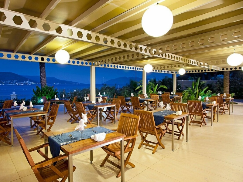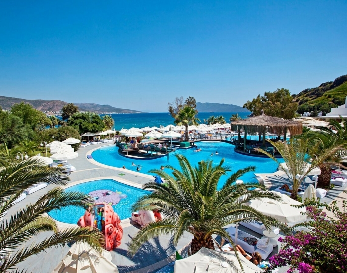Dit stijlvolle hotel ligt prachtig aan de Bodrumbaai en trakteert gasten op een wijds uitzicht over zee, haven en de beroemde historische St. Petrusburcht.