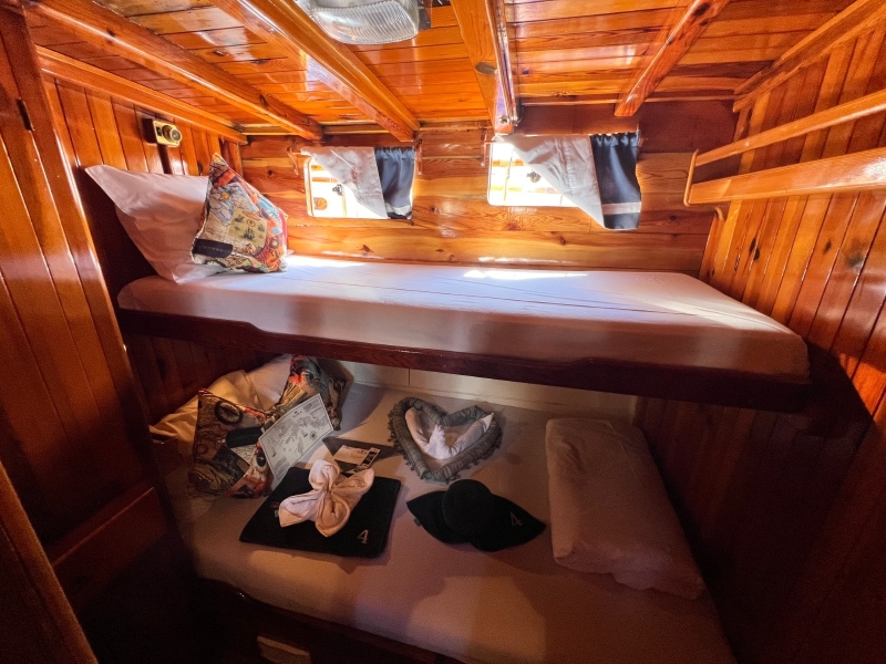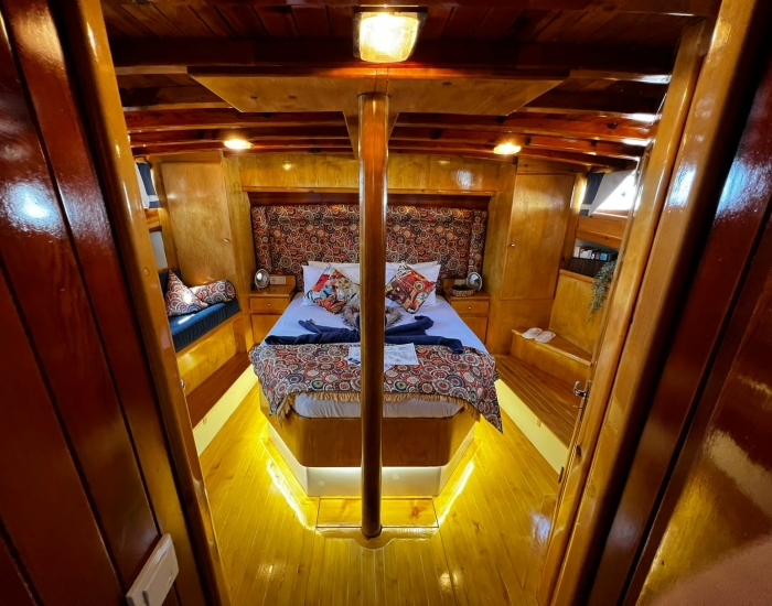 Deze elegante zeil-gulet, met haar sierlijke lijnen en lage ligging op het water ademt historie. Ze is al vele jaren een icoon in en rond Bodrum. Dit is niet zomaar een schip; het is iets speciaals. Als winnaar van meerdere Bodrum Cups is ze een ware blikvanger op het water. Haar schoonheid trekt steeds weer bewonderaars, die bovendien volop genieten van de gastvrije verwennerij aan boord.
