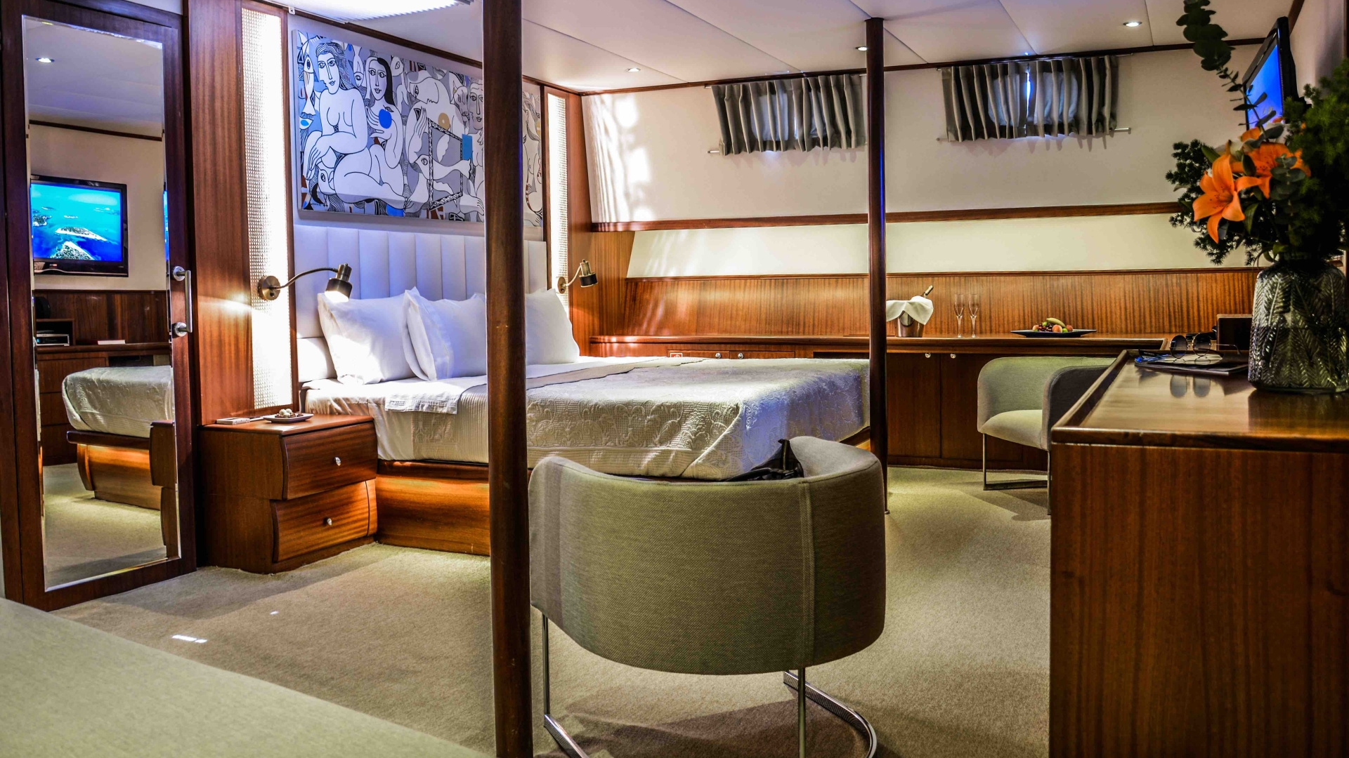 Type cabines: 5x 2-persoons (1x mastercabine royal, 4x 2-persoons)
