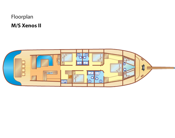 Alles komt samen aan boord van de Xenos II. Een buitengewoon ruime en luxe gulet, grotere bedden en compleet met een royale mastercabine XL. Dit prachtige zeilschip behoort tot de Comfort Blue Cruise Premium klasse en wordt exclusief verhuurd aan privégroepen. Slechts enkele weken per jaar zijn de cabines individueel te boeken. Geliefd bij BN'ers, families, bevriende stellen en zakenlieden, biedt de Xenos II een ongeëvenaarde ervaring: vakantie vieren op je eigen luxe zeiljacht, volledig verzorgd door een professionele bemanning. Aan het roer staat niemand minder dan de ervaren en in Bodrum bekende Nedim Danaci (beter bekend als Captain Iglo). Voor extra plezier op het water beschikt het schip ook over een snelle speedboot met waterski’s.